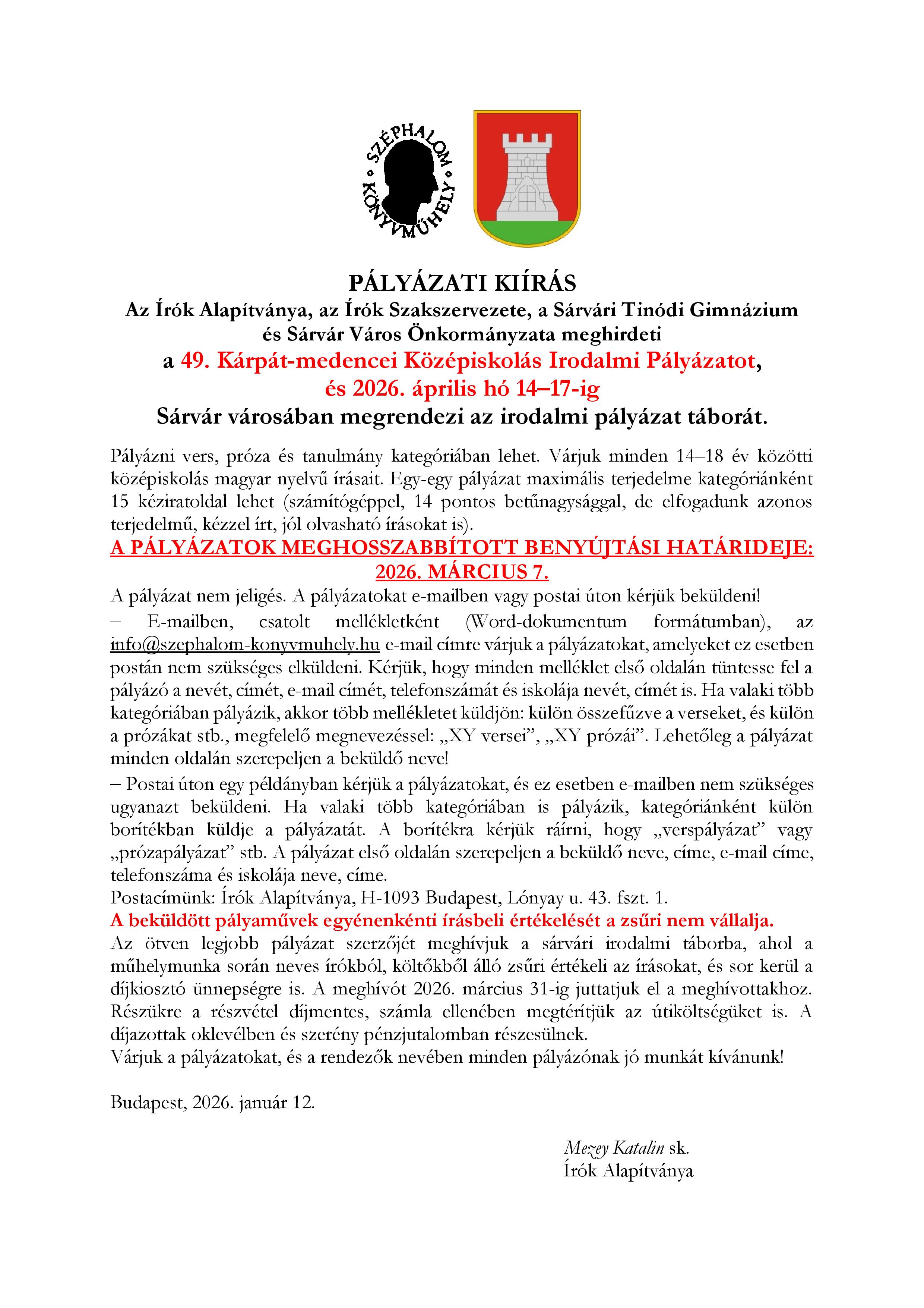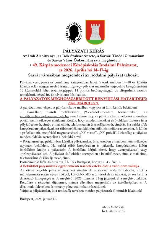49. Kárpát-medencei Középiskolás Irodalmi Pályázat és Tábor