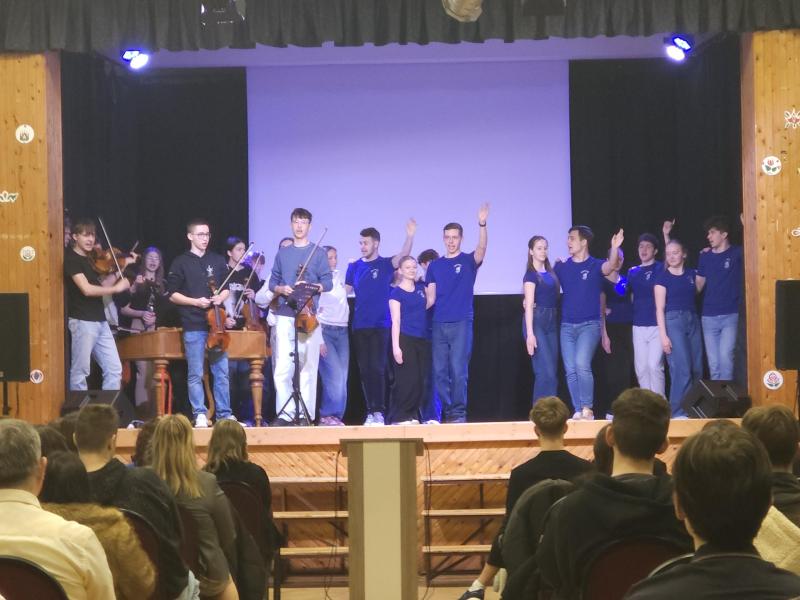 A program zárásaként a cseh csoport énekkara 3 népszerű, angol nyelvű dallal örvendeztette meg a magyar diákokat, majd a népi hangszereken játszó diákok muzsikájára a néptáncosok adtak elő egy újabb, igazán profi produkciót. Vendégeink a kedvünkért még egy magyar dalt (Sej, haj Rozi) is megtanultak és elénekeltek.