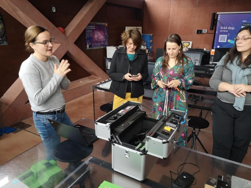 Másnap a Bosch multifunkcionális kamerát, a SenseBox készletet, az UniMat diákbiztos CNC marót, és a már emlegetett EMBL mikroszkópot próbálhatták ki a Sféra stábtagok. Bemutattuk a mobillaborunkat is. Úgy láttam, tetszett nekik. Ezt követően a testvérlabori kapcsolatok kialakításáról ötleteltünk: úgy érzem, talán kialakulhat valami.